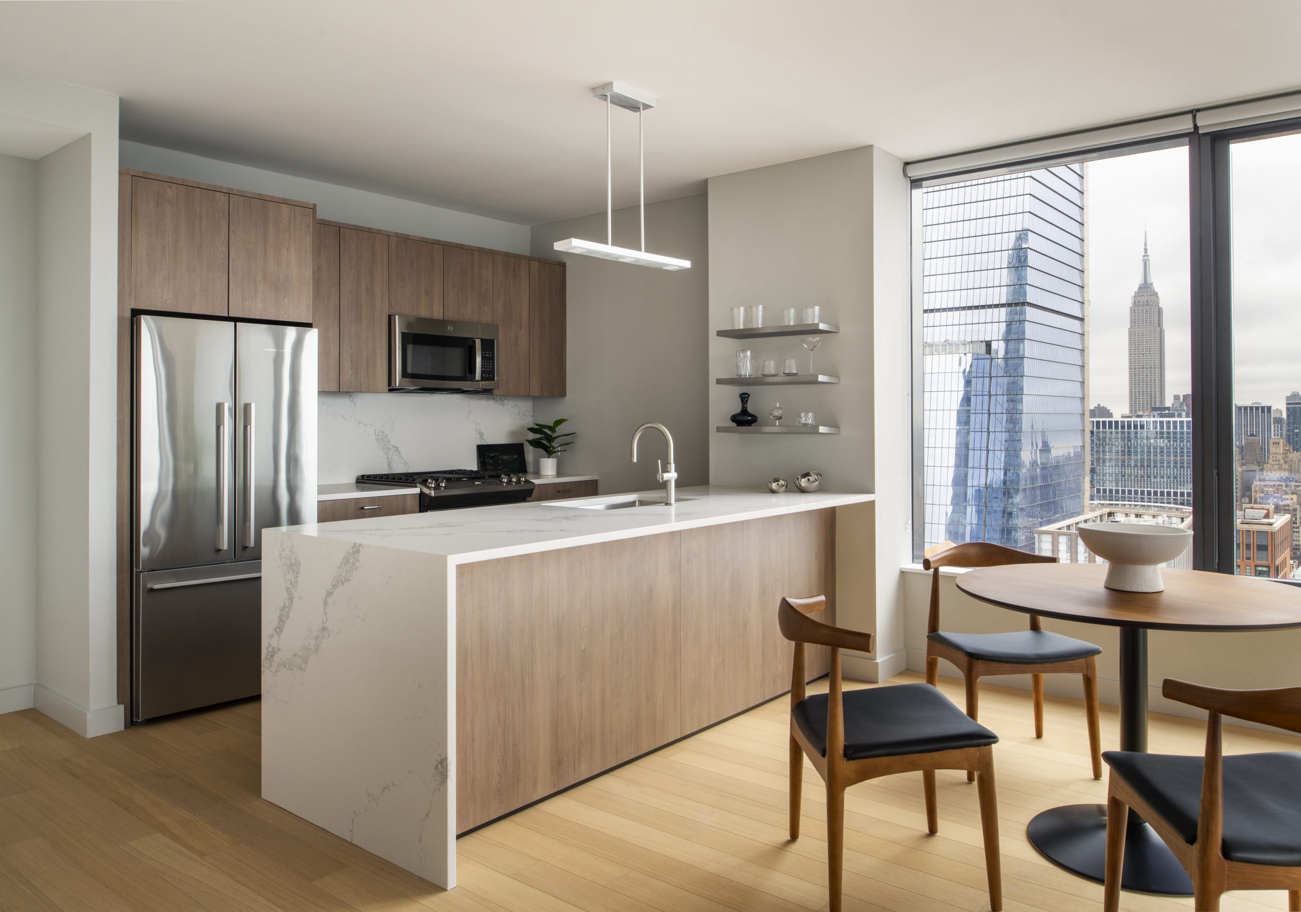 3Eleven is a 60-story market rate rental tower located at the crossroads of West Chelsea and Hudson Yards, offering sweeping views of midtown and downtown Manhattan. Complementing the residential units is an extensive staffed amenities program, including multiple tenant lounges, a gym with fitness studios, an outdoor pool, multiple roof decks, indoor and outdoor pet spaces, a parking garage, and bike storage. In addition to approximately 60,000 square feet of indoor and outdoor amenities, 3Eleven features 12,000 square feet of ground floor retail space.